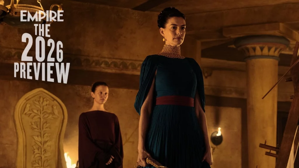 A revista Empire divulgou as primeiras imagens oficiais do projeto, confirmando o tom épico e a escala do novo trabalho de Nolan. O destaque inicial é Anne Hathaway como Penélope, esposa de Odisseu. A atriz volta a colaborar com o diretor após Interestelar (2014) e Batman: O Cavaleiro das Trevas Ressurge (2012), indicando mais uma parceria de peso. Ao fundo da imagem, surge Mia Goth como Melanto, criada do palácio cuja presença sugere tensões internas e motivações incertas. Veja abaixo: